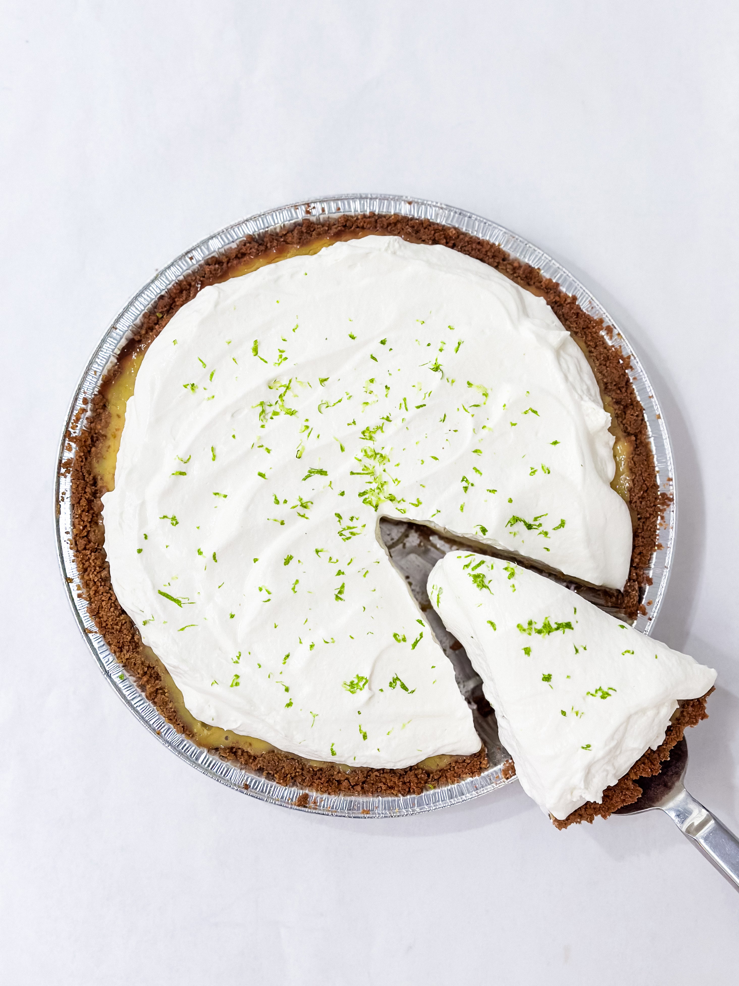 Rich, delightfully tart and just sweet enough, our Key Lime Pie is one of our biggest hits in-store. Made with a buttery graham cracker crust and topped with fluffy house-made whipped cream!