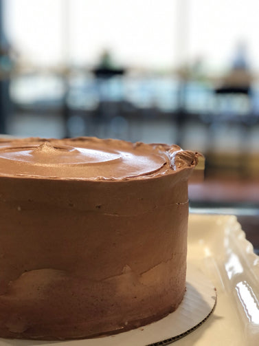 Our Devil's Food Chocolate Cake is ultra moist and fluffy, covered in a creamy Buttercream of your choice.