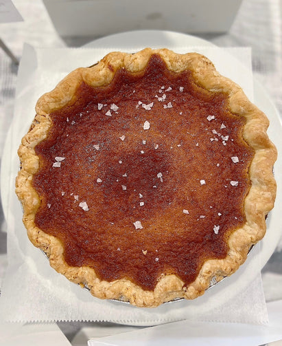 A 9-inch custard pie sweetened with honey and baked in our flaky, grass-fed butter crust, toped with flaky sea salt.